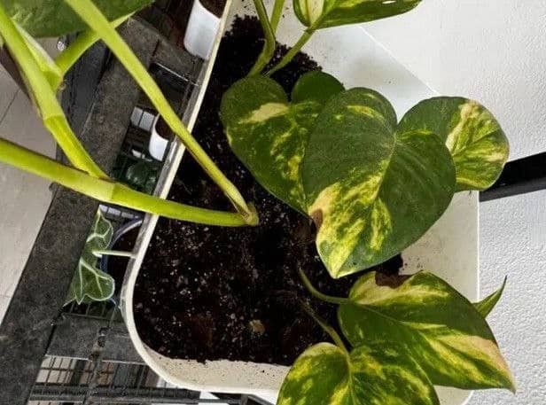 کمرنگ شدن و افزایش فاصله بین برگ ها در گیاه پتوس